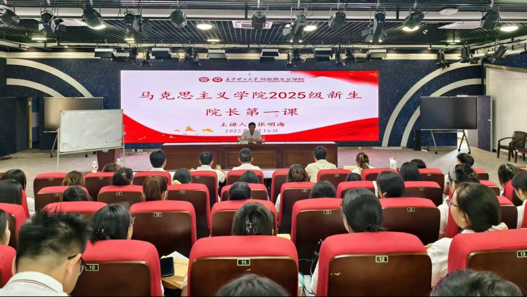2025年9月16日下午5:00,新利官网开户 马克思主义学院院长张明海教授在云塘校区文科楼B300报告厅,为2025级研究生讲授了“院长第一课”。本次活动由学院学工办主任、辅导员曾蓓主持,2025级全体研究生参加。