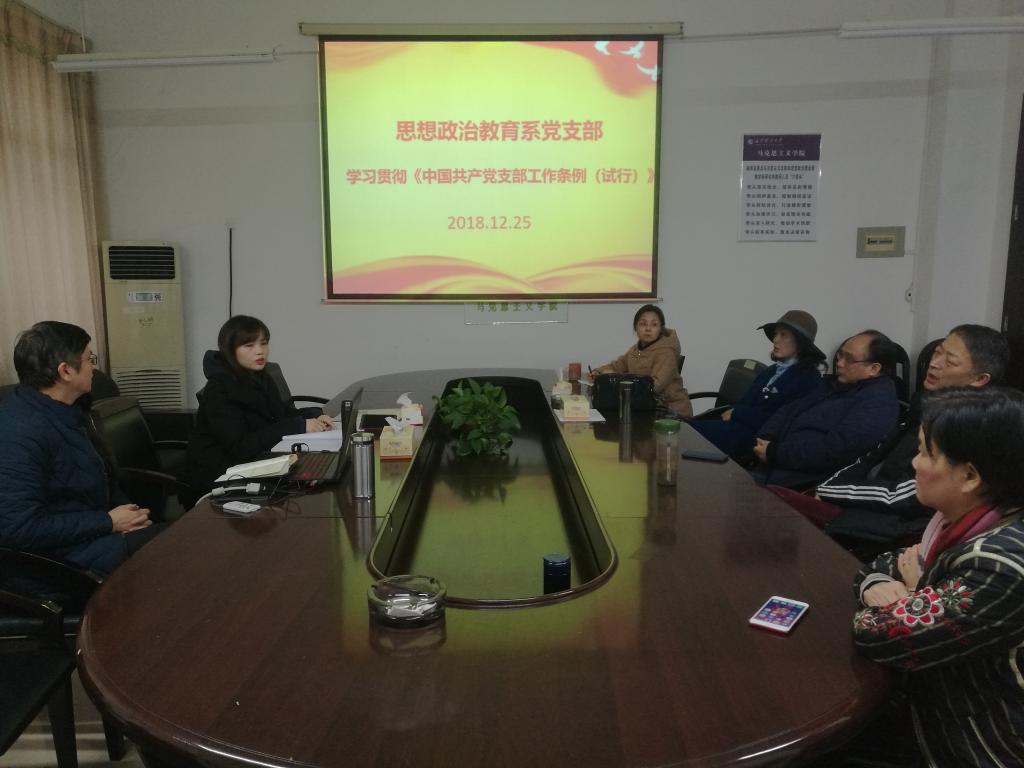 2018年12月25日下午2:00,马克思主义学院思想政治教育系党支部在云塘文科楼B601召开了组织生活会,支部9名党员准时出席,院长陈万球参加了本次组织生活会。
