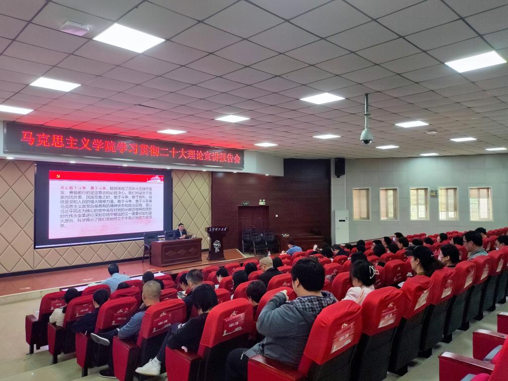 为深入学习党的二十大精神,2022年11月8日下午,新利官网开户 马克思主义学院于文科楼A200举办学习贯彻党的二十大理论宣讲报告会,此次报告会特邀院党委书记陈万球教授主讲,学院全体教职工参与。