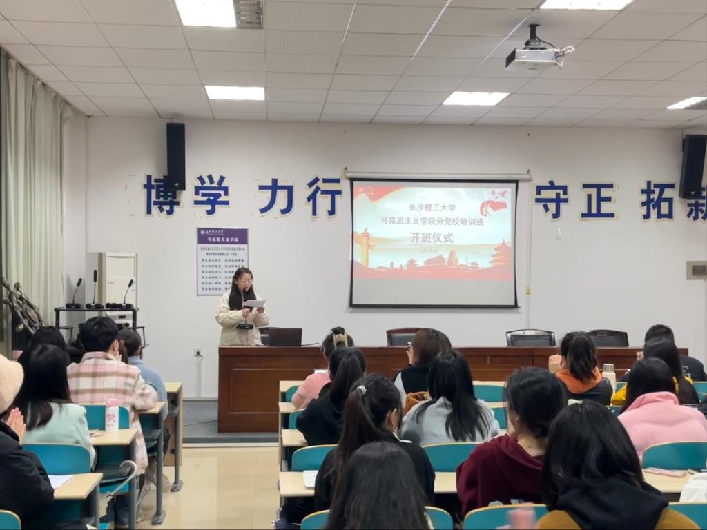 2023年4月24日晚19:00,马克思主义学院2023年上半年入党积极分子、发展对象、预备党员党校培训班开班仪式在云塘校区文科楼C202教室举行。此次开班仪式由本次入党积极分子培训班班长2022级研究生刘尹靖主持,马克思主义学院副院长唐俊、辅导员曾蓓出席,马克思主义学院全体入党积极分子、发展对象和预备党员培训班成员参加。