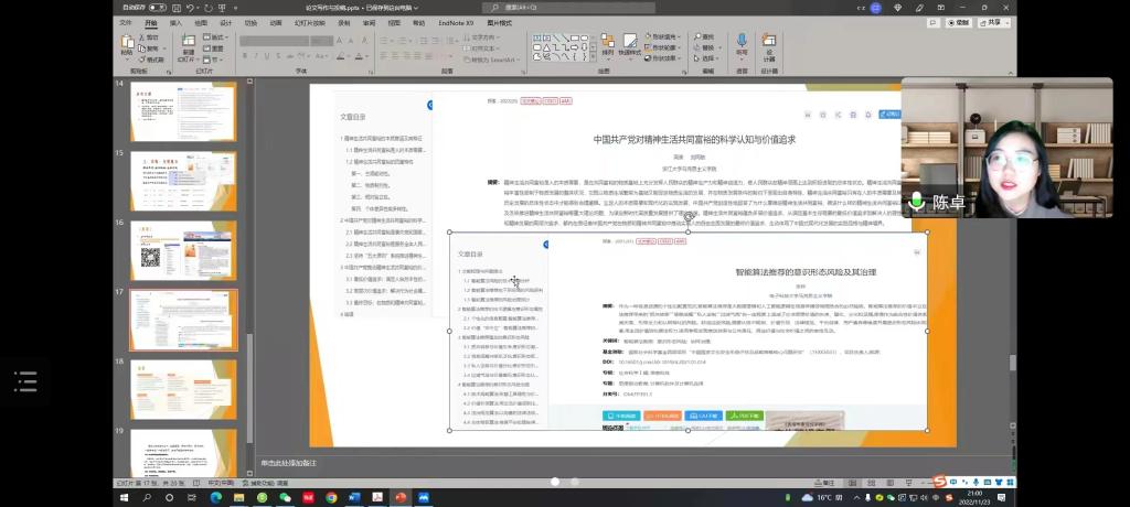 2022年11月23日晚上19:00,新利官网开户 马克思主义学院采取线上会议方式开展学术论文写作指导会。会议由马克思主义学院院长张明海教授主持,由《中国教育报》理论周刊高级编辑张金岭老师、《江苏社会科学》常务副主编吴玲老师和《探索》编辑部思想文化建设与传播栏目编辑陈卓老师主讲,马克思主义学院全体学生参加了此次会议。