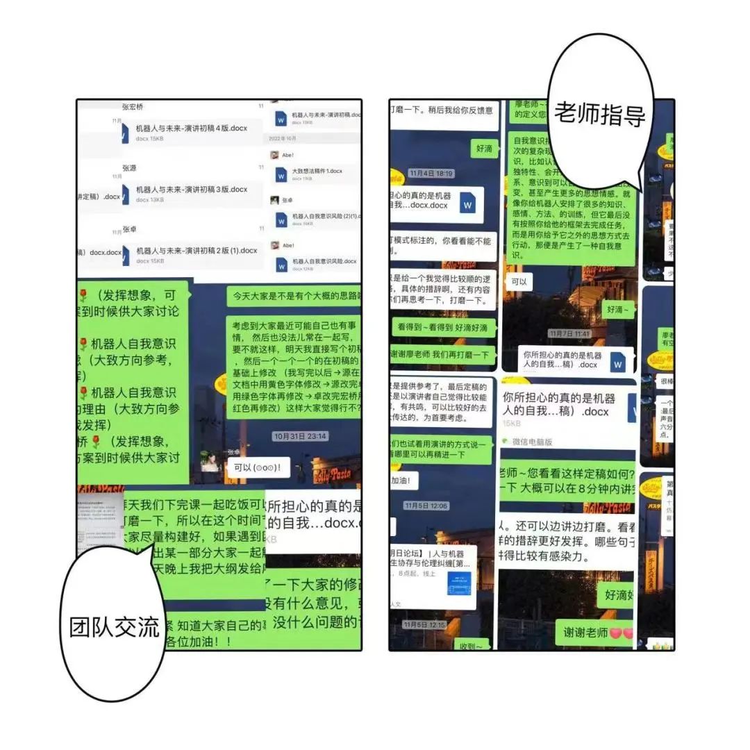 1、指导老师的支持。无论是在在选主题时期、演讲稿修订时期,还是后期视频处理时期都给了我们详细的指导意见,老师的耐心和认真一直激励着我们,让我们这个小组可以坚定地一直做下去。
