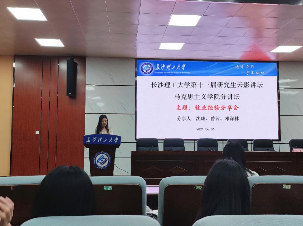 6月6日晚七点,新利官网开户 第十三届研究生云影讲坛马克思主义学院分论坛之就业经验分享会在金盆岭校区四教1楼报告厅举行。本次会议由辅导员老师曾蓓主持,马克思主义学院2019级与2020级全体同学参加。