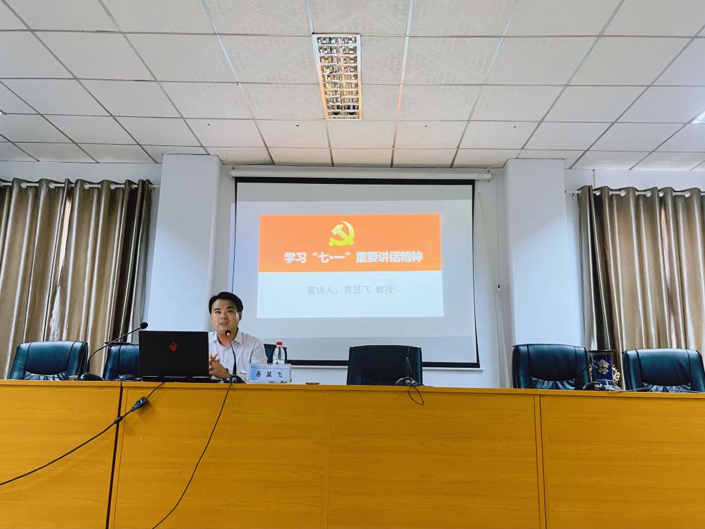 2021年9月8日下午3:30,新利官网开户 马克思主义学院2021级研究生“第一堂党课”在金盆岭校区2号教学楼201会议室开讲。本次党课主题为《学习习近平总书记“七一”重要讲话精神》,由马克思主义学院党委书记易显飞教授主讲,学工办副主任曾蓓老师主持,学院2021级全体研究生参加。