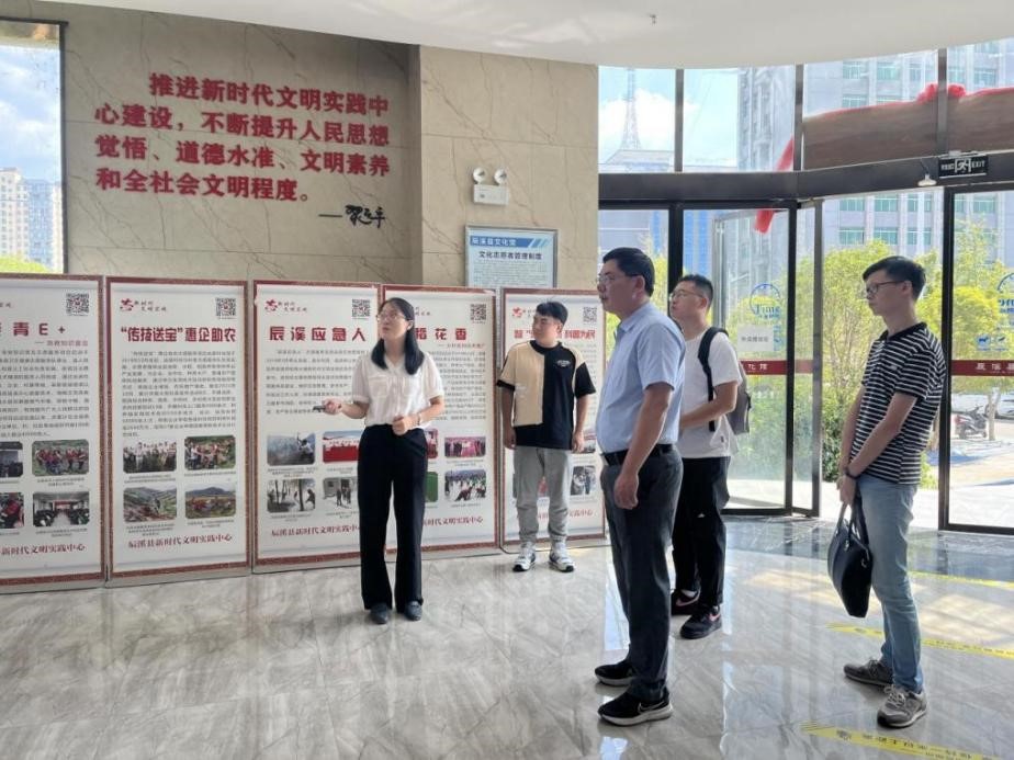 8月18日,专业实践团一行首先来到辰溪县新时代文明实践中心,辰溪县团委书记刘艳为我们详细讲解了辰溪县新时代文明实践中心的建设情况。据悉,2018年8月,辰溪县被列为全国50个建设新时代文明实践中心试点县之一。2018年9月,辰溪县新时代文明实践中心挂牌成立,中心办公室设在城东广电大楼副楼5楼。对标对表中央要求,整合盘活县“五馆三宫一中心”(即体育馆、博物馆、科技馆、文化馆、图书馆,妇女儿童宫、青少年宫、工人文化宫,影剧中心)等阵地资源,确保县级层面实践活动有阵地。辰溪县新时代文明实践中心大力整合志愿服务力量,组建理论宣讲、教育服务、文体服务、科技科普服务、法律服务、卫生健康服务、乡贤文明实践、辰溪籍在外成功人士、文明劝导、网络服务等“11+N”县级专业志愿服务队伍,每支队伍均在文明实践中心设置服务窗口。