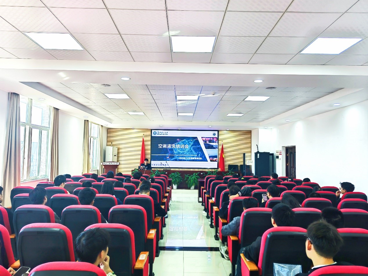 降碳青锋团队进行简要介绍,让全体志愿者对空调清洗工作有了初步的认识。吴家樑从空调清洗志愿服务活动内容以及要求两个方面,对全体志愿者进行具体活动安排。接下来,吴家樑对具体机型空调的清洗方式及步骤进行全面的教学培训,并进行现场演示,帮助全体志愿者更好地掌握清洗方式。最后,吴家樑对双碳知识宣讲提出具体要求,希望全体志愿者在活动过程中不忘宣讲科普,为我校师生共创干净、整洁的学习工作环境贡献力量。