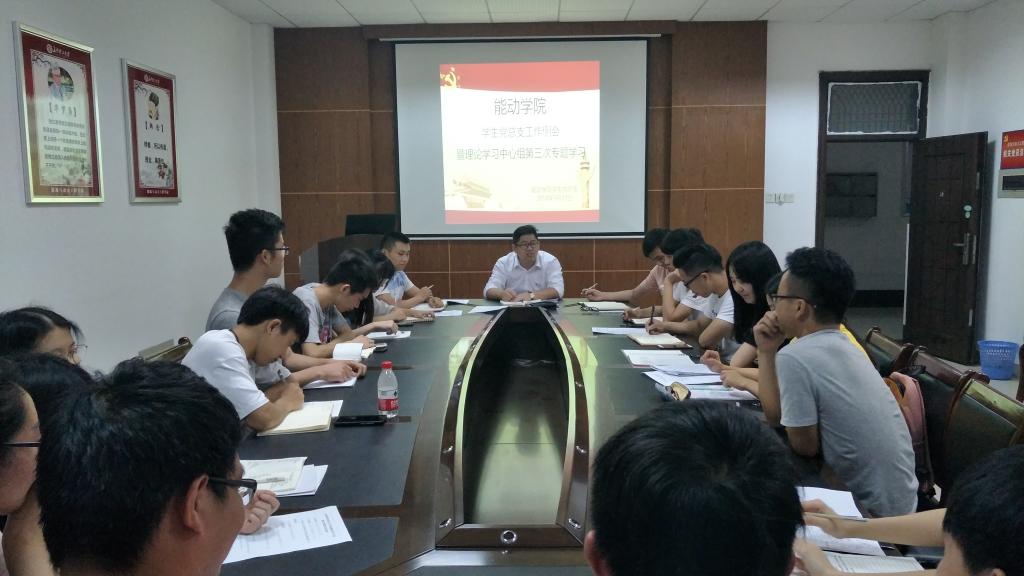 为提升学院学生党建工作水平,进一步推进“两学一做”学习教育常态化制度化,5月29日晚,能动学院学生党总支工作例会暨理论学习中心组第三次专题学习在工一A422会议室召开。会议由副书记刘泽良同志主持,党建辅导员李小军老师和所有学生党建干部参加本次会议。