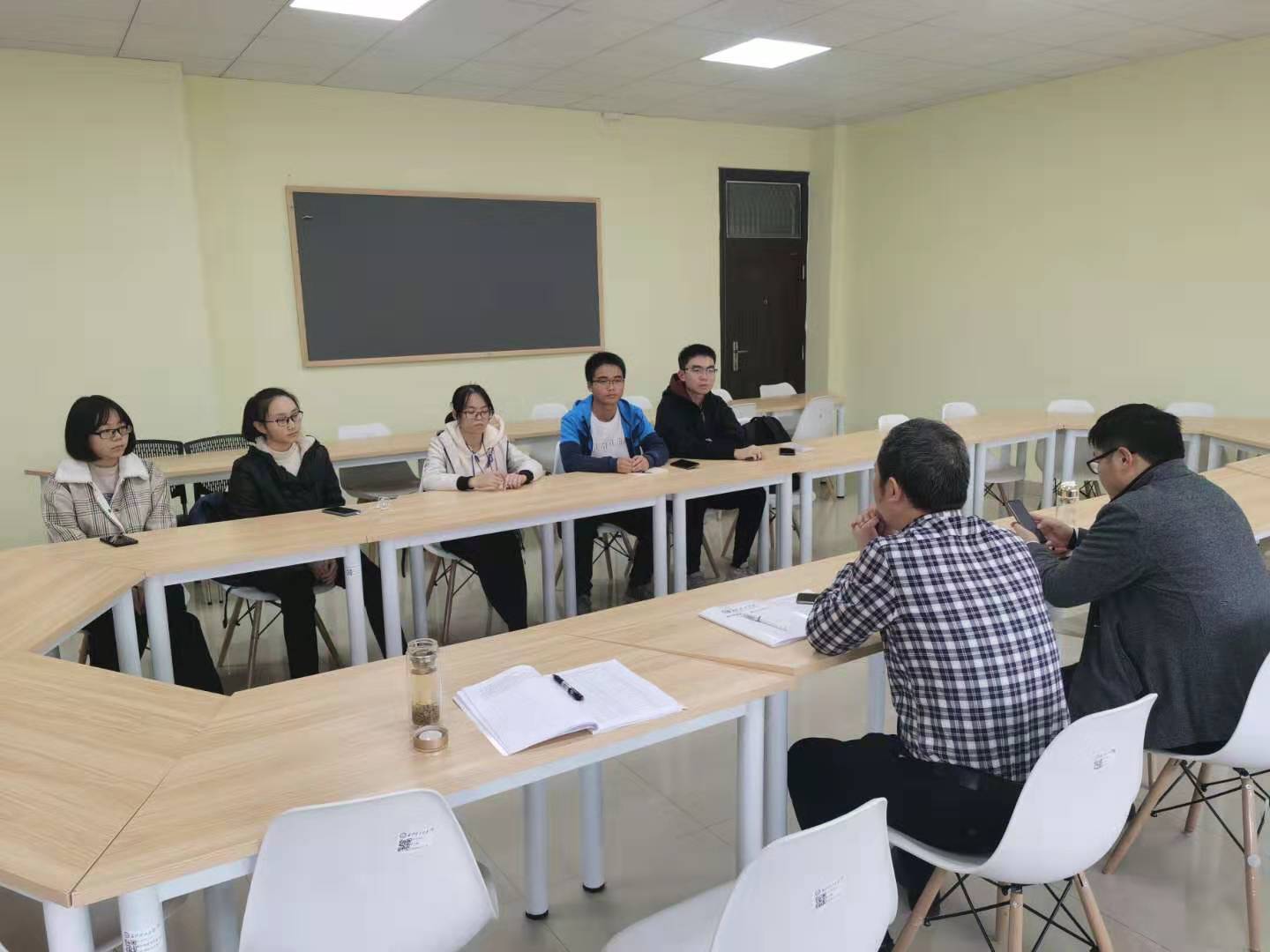 2019年11月20日下午3:00,2019级机电教改班第五导师团队师生座谈会在工一B411举行,第五导师团队毛聪教授、尹来容副教授和张明军副教授与2019级机电教改班李坤恒、徐梓媚、杨婧雯、李天宇和朱百川5位同学参加座谈会。