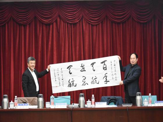 总结汇报及交流座谈会的召开恰逢中交天津航道局有限公司120年华诞,会议正式开始前,我校副校长黄立宏、水利学院常务副院长胡旭跃分别代表学校和学院向中交天津航道局有限公司赠送了“百年天航  世界天航”书法礼品和湘绣礼品。