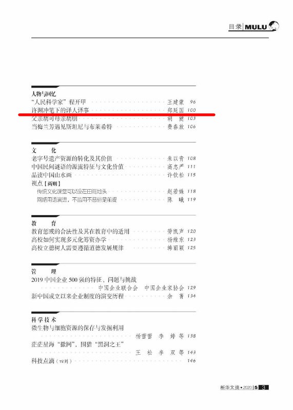 近日,我校外国语学院郑延国教撰写的《许渊冲笔下的译人译事》一文,原发表于“反映中国知识界、文化界思想律动和人文关怀,在思想文化领域有较大影响”的刊物《书屋》2019年第12期,被国家权威转载刊物《新华文摘》2020年第5期全文转载
