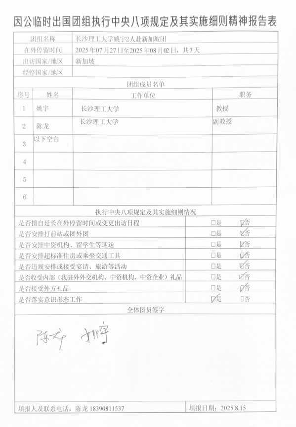 三、《因公临时出国团组执行中央八项规定及其实施细则精神报告表》