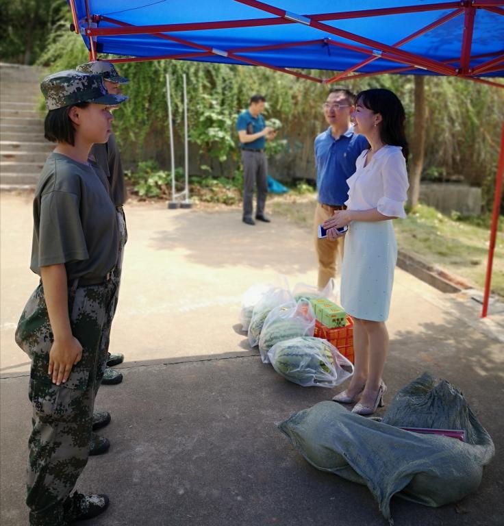 8月28日上午11:00,水利工程学院党委书记喻玲娜、党委副书记王学成和学工办老师们一行来到学活训练场看望并慰问了我院正在进行集训的民兵连成员。