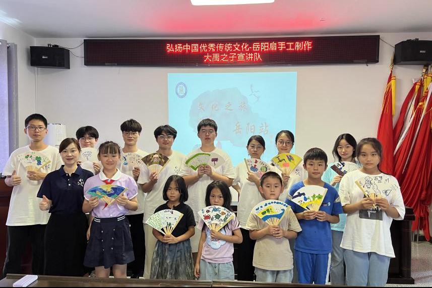 志愿者阳迁锡为小朋友们介绍我国优秀传统文化的典型例子,并结合岳阳这座文化古城的特色,着重讲解了全国三大名扇之一——“岳州扇”的历史、特点及制作工艺,通过岳州扇带大家感受岳阳的传统文化。
