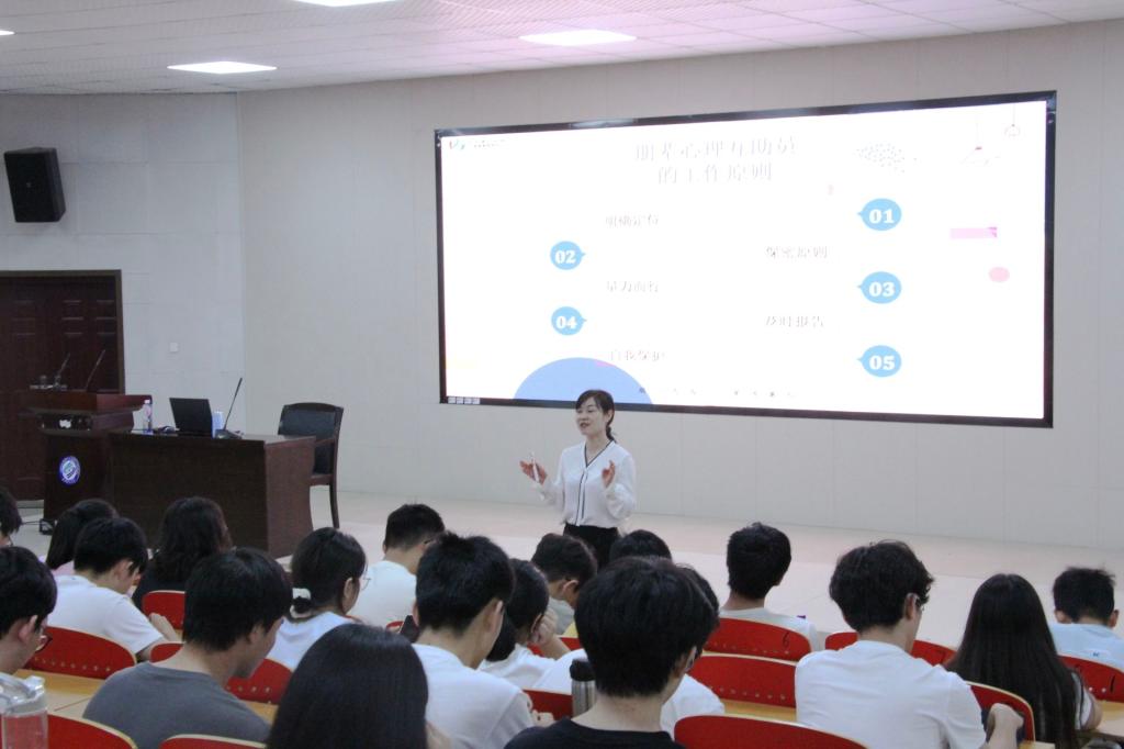 2024年5月21日,水利学院心理部在文科楼A100教室组织开展了2023级及研究生心理互助员朋辈培训。本次培训由学院心理辅导员刘灿老师主讲,2023级本科生与研究生各班心理朋辈互助员参加此次培训会议。