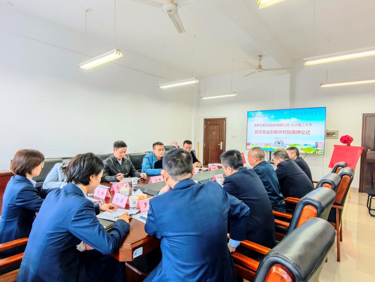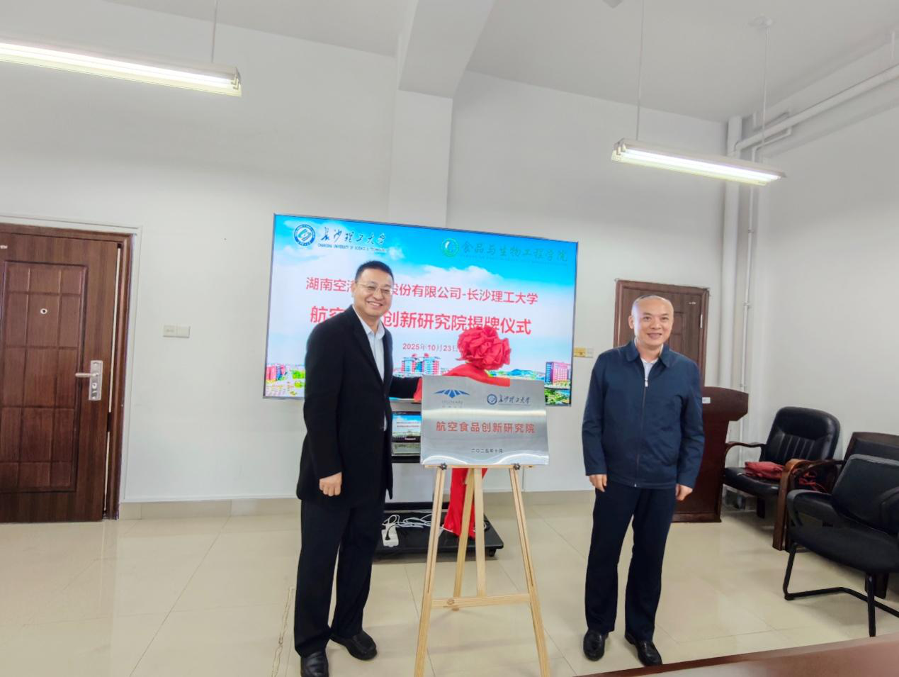 与湖南空港实业股份有限公司在食品学院(A329)举行航空食品创新研究院揭牌仪式,双方代表共同见证了这一校企合作新篇章的开启。