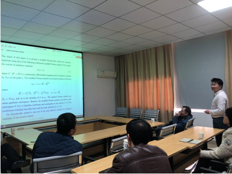 3月12日下午,数统学院信息与计算科学系在理科楼A502开展了学术讲座活动,旨在促进ESI学科和教学科研团队建设,这是信计系ESI学科建设系列活动的第一场学术交流。学术报告会由系主任姜英军教授主持,周伟军教授作了题为“A modified Broyden-like method for nonlinear equations”的讲座,介绍了求解非线性方程组的一种有效的新方法。该方法是在修正Newton算法的基础上进行改进,新方法具有全局收敛性和超线性收敛速度。