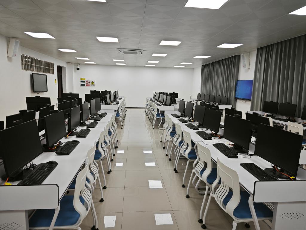 年人机时数21万以上,学生每年使用实验室进行比赛获省部级奖100项以上。实验室建设场景如下图: