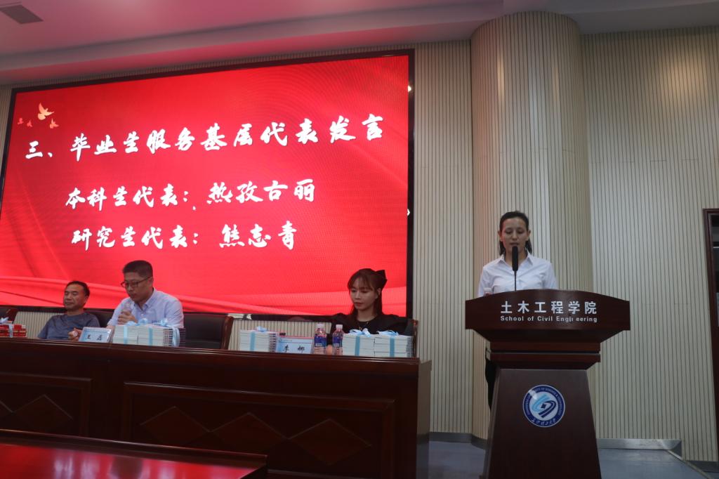 人的一生充满多种选择,而热孜古丽却坚定的选择将最绚丽的青春,绽放在广阔的西部原野。来自桥梁1701班的热孜古丽·热依木在出征仪式上讲述了她志愿服务西部计划的初衷,并表示自己必将不负青春,将最美的青春奉献给祖国、奉献给人民、奉献给家乡!