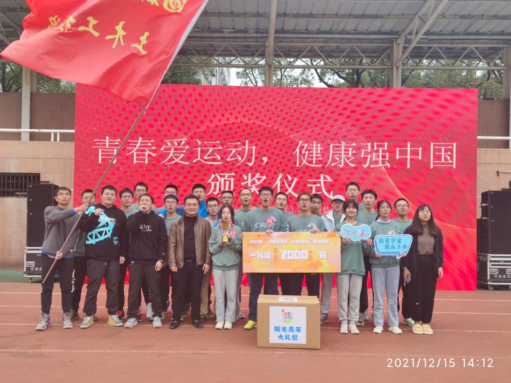 12月15日中午,由共青团新利官网开户 委员会主办、新利官网开户 学生会承办的新利官网开户 “青春爱运动,健康强中国”主题长绳比赛决赛于金盆岭校区西田径场激情开赛,参加决赛的十九个学院经过前期的初赛选拔,每个学院各自派出“最强”代表队参加,我院桥卓2101班代表土木学院参赛,最终荣获第一名。