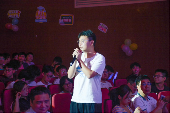 在《我想对你说》环节,院党委书记江河、院长王磊表达了最真挚的祝愿,勉励全体毕业生带着“逢山开路遇水搭桥”的开拓精神、带着“土累天下,木承苍穹”的土木精神,拨时代之浪潮,担时代之使命,扎根基层,建设祖国。让青春在党和人民最需要的地方绽放绚丽之花,让“长理人”这张名片在祖国的建设中更加鲜艳闪亮。随后,毕业生辅导员龙承运、董治佑和汪国栋饱含深情、带领同学们回忆大学生涯、表达万分不舍,毕业生代表用充满青春活力的口吻将四年来的点点滴滴分享给大家,表达了对学校和学院的感激之情,将晚会氛围推向顶点。