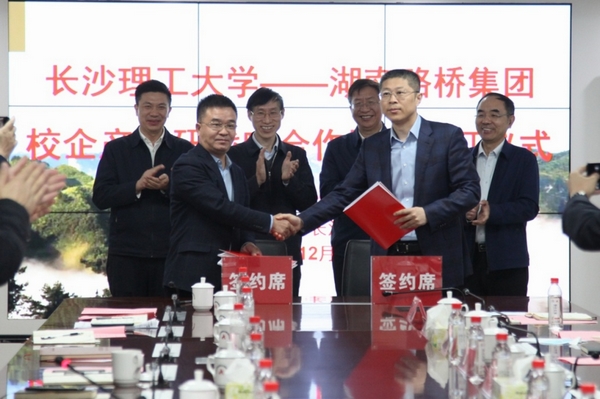 土木工程学院院长王磊与湖南路桥集团副总经理刘迪祥代表校企双方签署战略合作协议,根据协议,双方将在科研开发、技术攻关、人才培养、资源共享等方面进行深入、全面、多元化的合作。
