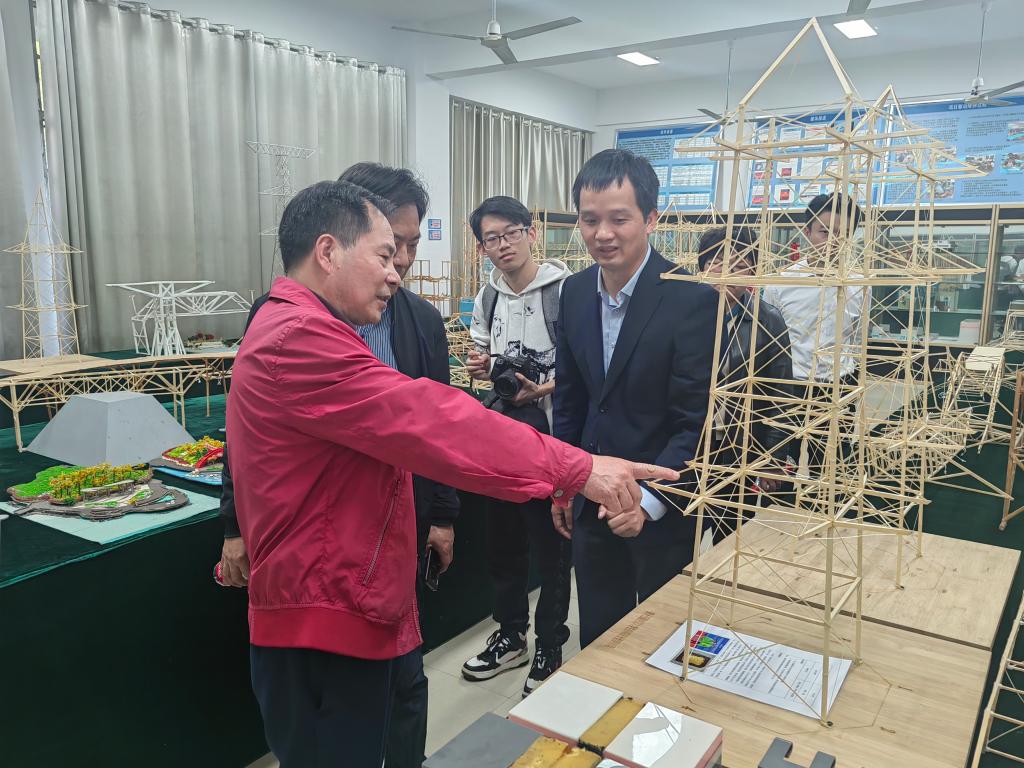 王磊首先代表学院对毛一平和丁元新副秘书长的莅临表示热烈欢迎并介绍了学校、学院的基本情况。他表示,学院全力配合赛事组委会,高质量推进赛事的前期筹备工作。全力保障赛事的顺利举办。付果从“赛题简介、未知参数、加载步骤、设备模拟、场地布置”五个方面详细汇报了前期的命题工作,并得到了秘书处专家的高度赞扬。黄阿明代表学院汇报了第十六届全国结构设计竞赛前期筹备情况,重点从“赛事经费、赛事协商、场馆准备、文稿撰写、物料设计、赛事相关准备”六个方面介绍了学院目前的竞赛筹备进展,表示学院将继续深入谋划,保障大赛筹备工作高效有序推进。