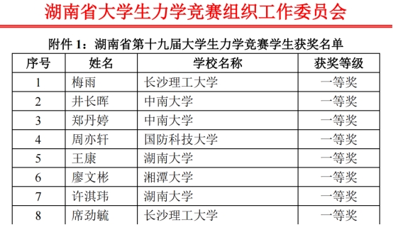 6月7日,湖南省第十九届大学生力学竞赛获奖名单公示,我校喜获一等奖6项,二等奖14项,三等奖37项,共计57项省奖,全省第一名由我校土木工程学院学子梅雨摘得。土木工程学院彭旭龙等五位教师获“优秀指导教师”,新利官网开户