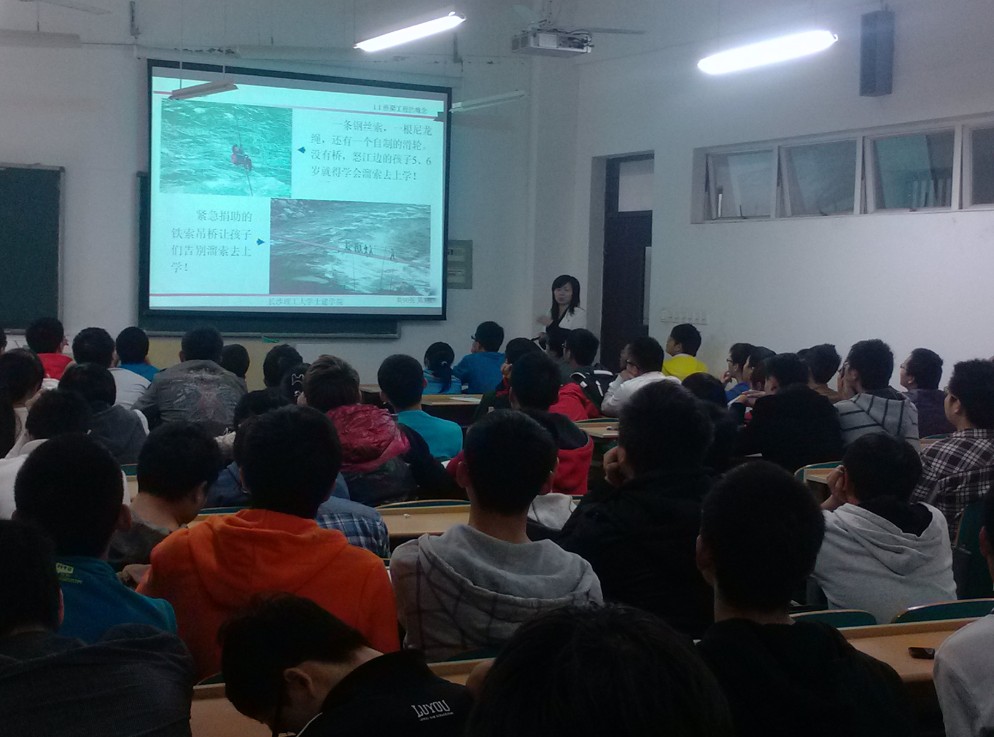 2012年10月30日下午2:00,杨美良教授做客土建学院拓新论坛,在工科二号楼B606为我院学生做《中国桥梁的发展与挑战》学术讲座,2011、2012级桥梁卓越班全体学生听取了讲座。