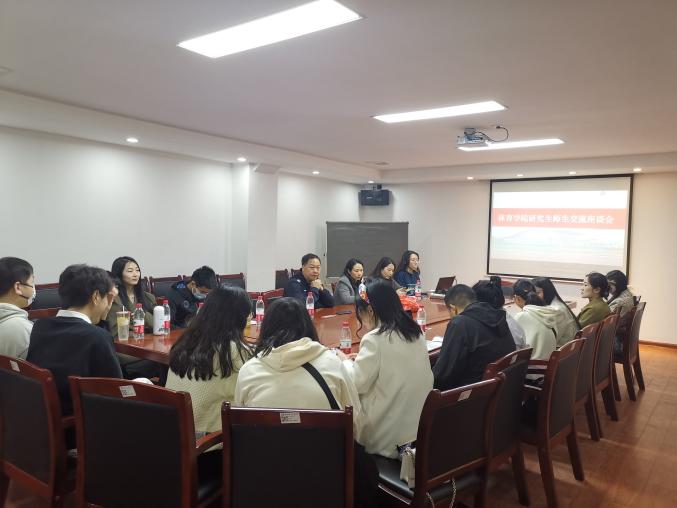 3月14日,体育学院研究生师生交流座谈会在我院金盆岭校区会议室进行。体育学院党总支副书记李龙、副院长潘红玲、硕士生导师代表章罗庚体育学院全体研究生参加,会议由科研与研究生办副主任徐慧明主持。