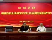 2024 年 5 月 21 日下午,湖南省社科联二级巡视员刘平处长应邀来到校体育学院,在云塘校区体育馆学术报告厅为学院师生带来了旨在提升体育学院课题申报以及研究水平的学术讲座。本次讲座由院长张恳教授主持,学院党总书记李龙,副院长潘红玲、谭志华等学院教师以及全体研究生聆听了本次讲座。