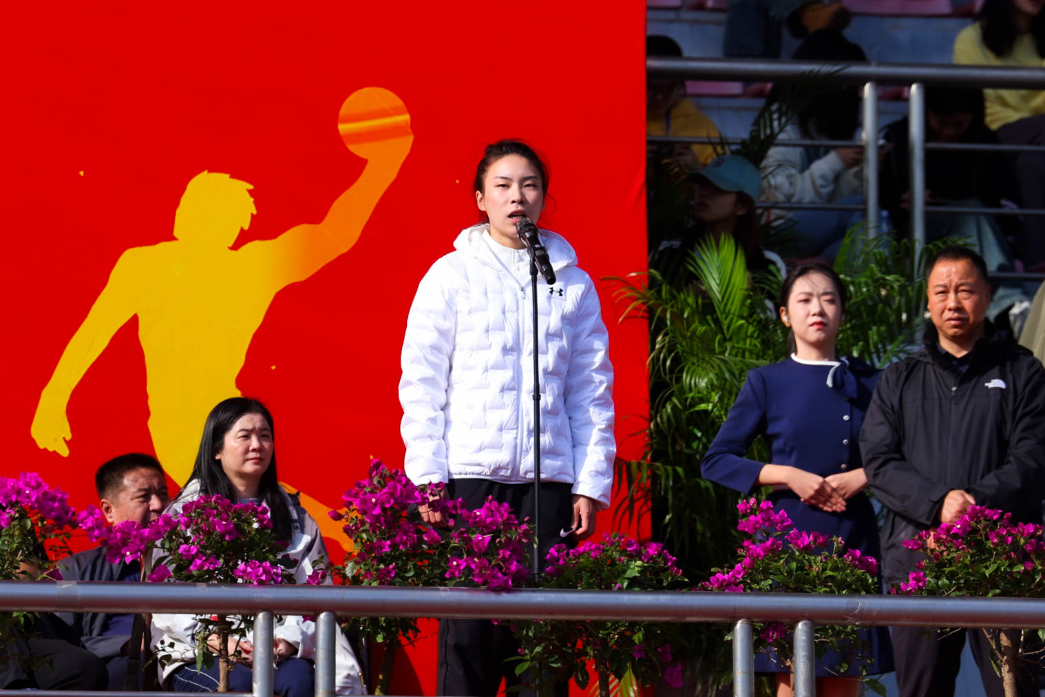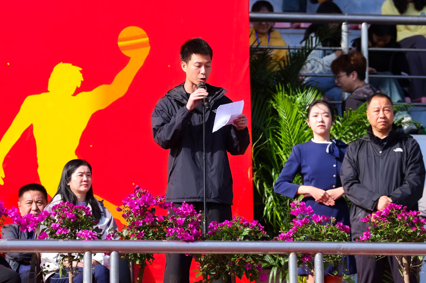校党委委员、副校长谈传生发表了激情洋溢的开幕致辞。他强调,学校始终将体育视为育人的重要基石,坚持“五育并举”,精心构建特色鲜明的体育课程体系。通过实施“三自主”教学模式,实现“教、赛、练”的深度融合,致力于为师生创造更优质的体育锻炼环境。“无体育,不长理;无运动,不青春”,他号召全校师生将体育运动融入日常,强健体魄,积极拥抱健康生活。