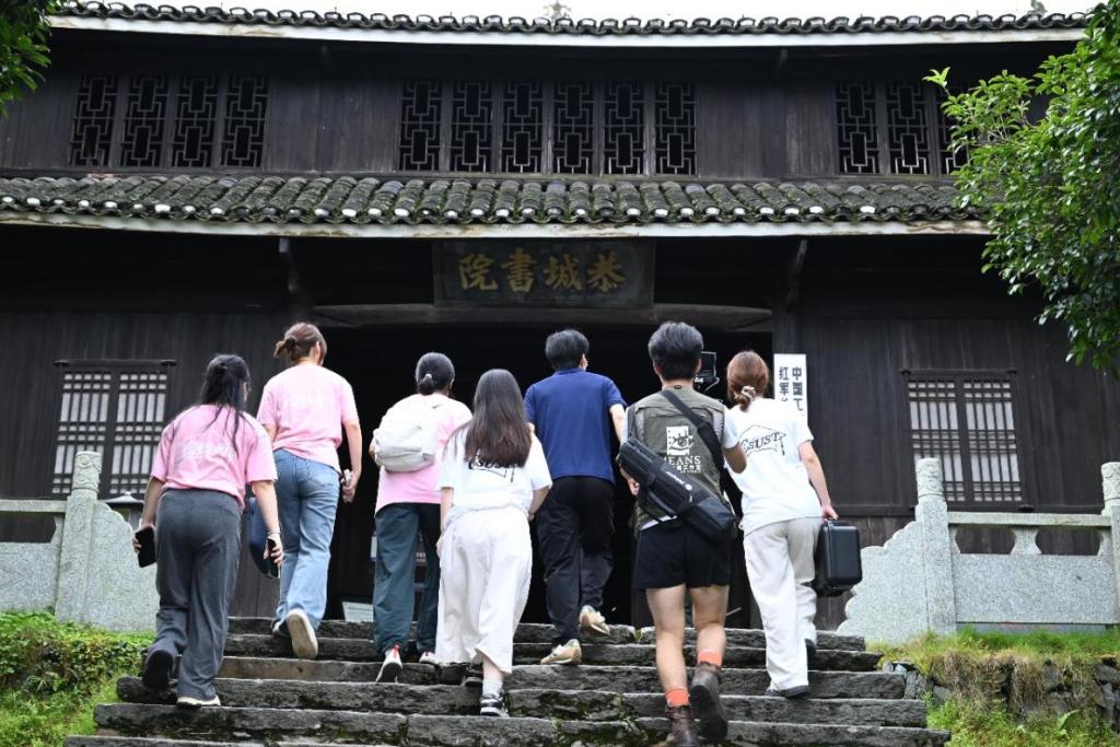 此外,胡群松教授还强调了人与自然和谐共生的重要性,他认为保持人在自然界平稳生存、幸福成长离不开人对环境和实物遗存的保护。随后,实践团成员在讲解员王洁的带领下走进恭城书院,参观参观通道会议遗址,感受侗族建筑倡导的人与自然和谐共生的理念,体悟恭城书院从教书育人场所到红色文化传播地的历史延续。