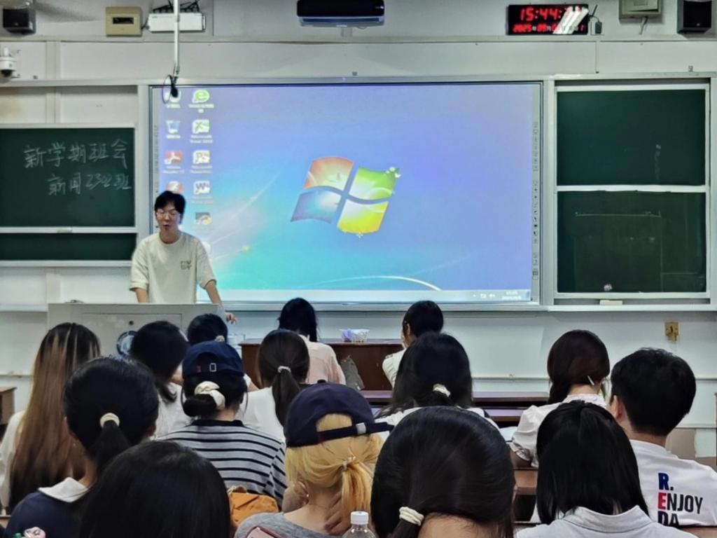 在此次班会中,各班紧密围绕班会主题,通过“总结反思、实践分享、安全教育和学业规划”四个环节,有序推进班会开展。各班首先系统梳理了上学期班级同学在学业进展、科研探索、文体活动及日常生活中的收获与不足,随后,积极分享了假期在媒体机构、文化企业、政府宣传部门等地的实习见闻,以及投身乡村振兴调研、非物质文化遗产保护等社会实践活动中的体验与感悟。此外,各班结合真实案例和互动讨论,引导同学们深入探讨防范电信网络诈骗、消防安全、交通安全、食品安全、心理健康等议题。最后,各班班主任引导同学们依据专业培养要求和个人发展愿景,科学制定新学期学习计划与长远目标。