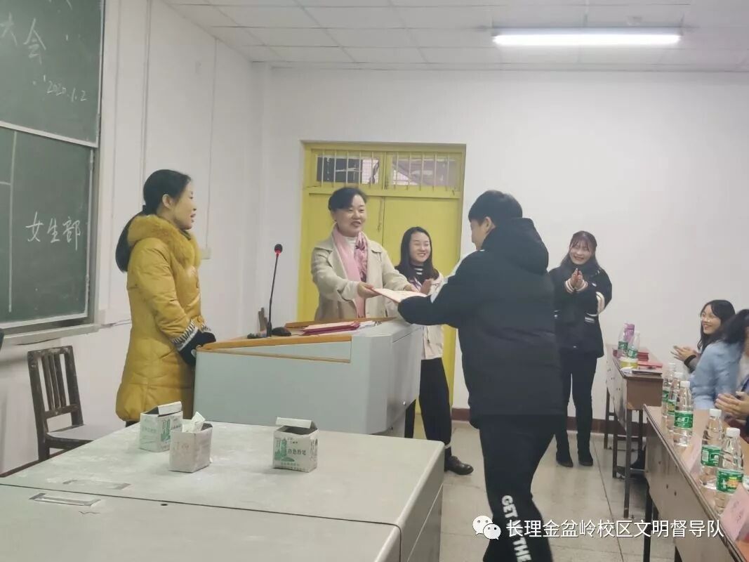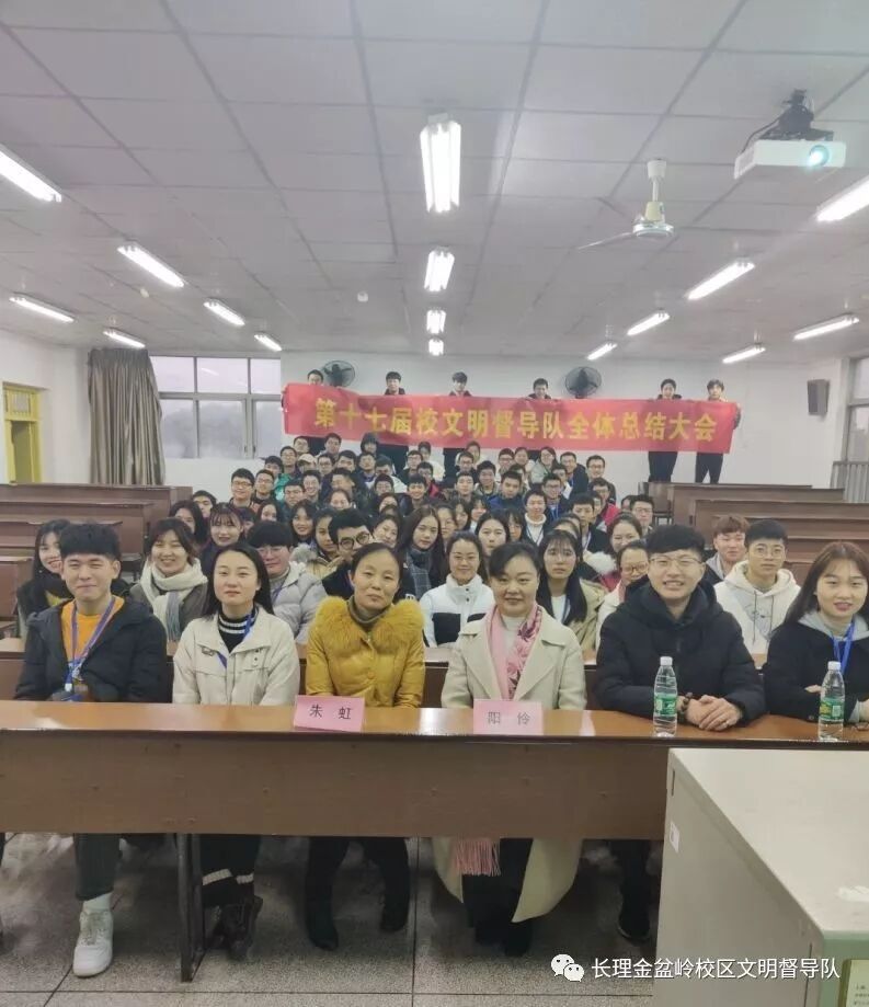 2020年1月2日,校文明督导队在金盆岭校区4教409室召开了本学期工作总结大会,参加会议的有校文明督导队金盆岭校区全体成员,公寓中心阳伶老师、朱虹老师到会指导。