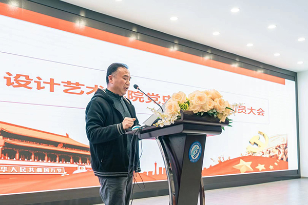 第四届委员会委员、副校长谈传生参加指导。会议由设计艺术学院党委副书记文丽丽主持,学院全体师生党员参加会议。