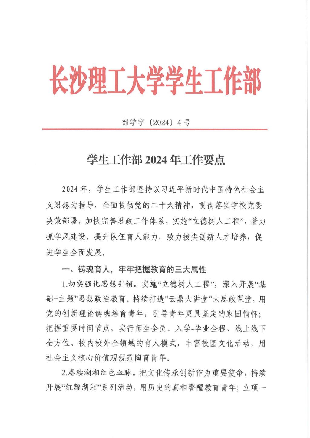 学生工作部2024年工作要点