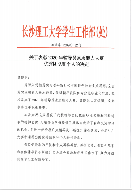 关于表彰2020年辅导员素质能力大赛优秀团队和个人的决定