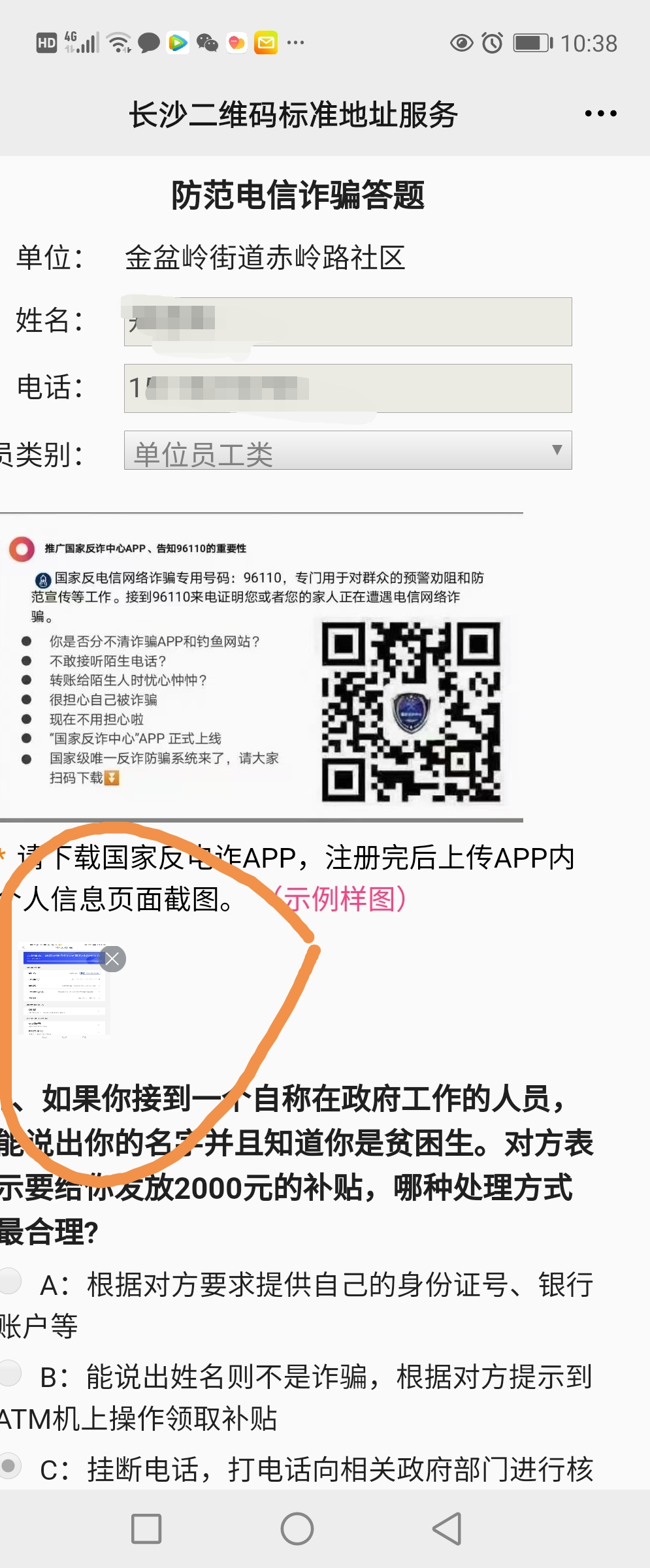 4.微信扫码答题二维码(如图4),上传“实名认证截图”(如图2),按照规定答题,答题结束后提交才算完成所有步骤(如图5)。为了减少同学们的财产损失,谨防电信网络诈骗,请务必不要卸载国家反诈中心APP。