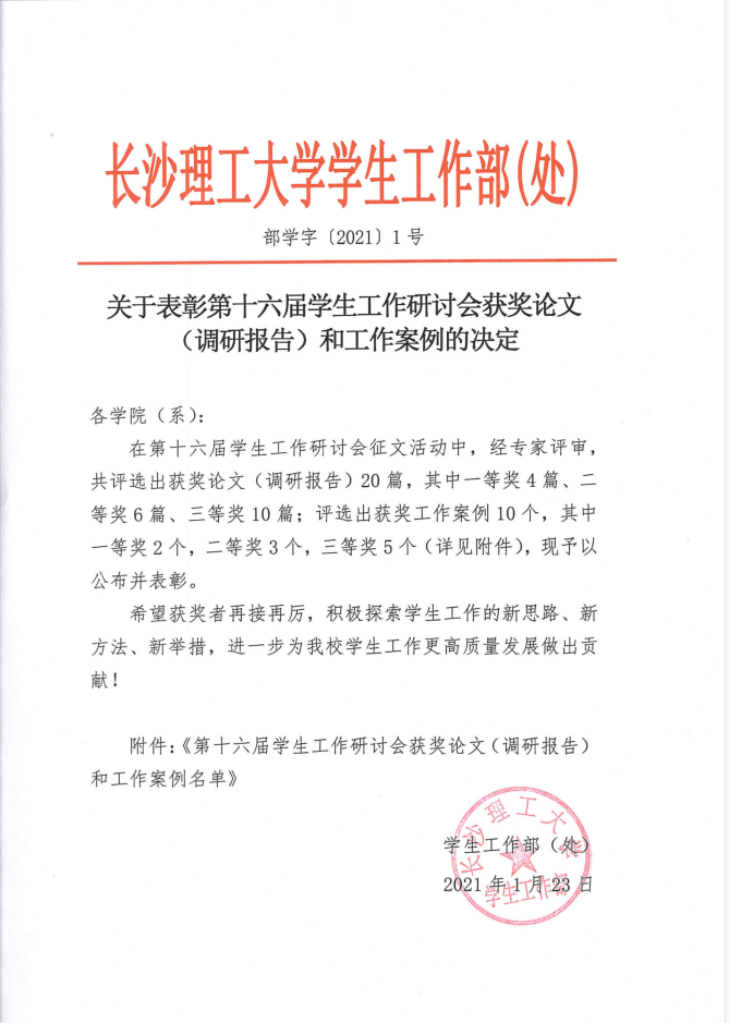 关于表彰第十六届学生工作研讨会获奖论文(调研报告)和工作案例的决定