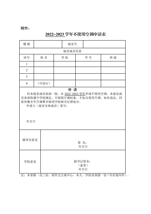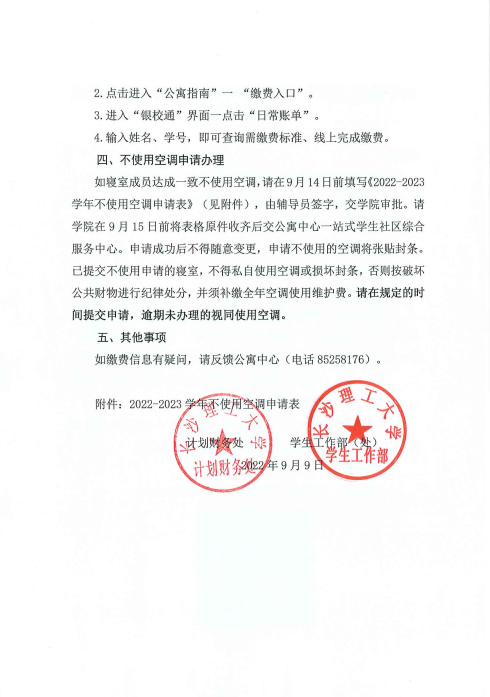 关于缴纳2022-2023学年学生公寓空调使用维护费的通知