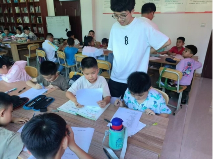 为了满足乡村儿童的年龄差异与学习需求,王昱辰精心设计了分层教学内容。面对低年级学生,他避开枯燥的知识灌输,开设趣味识字、口算游戏等课程;在趣味识字课上,他手持印有汉字与对应图画的字卡,当举起“飞”字卡时,孩子们一眼发现“像一只小鸟”;讲解“雨”字时,他引导大家联想水滴形态,孩子们还自发模仿“淅沥淅沥”的雨声,在互动中轻松掌握汉字。而对于高年级学生,他则聚焦学业难点,提供针对性的作业辅导与解题思路讲解,帮助孩子们攻克学习难关。