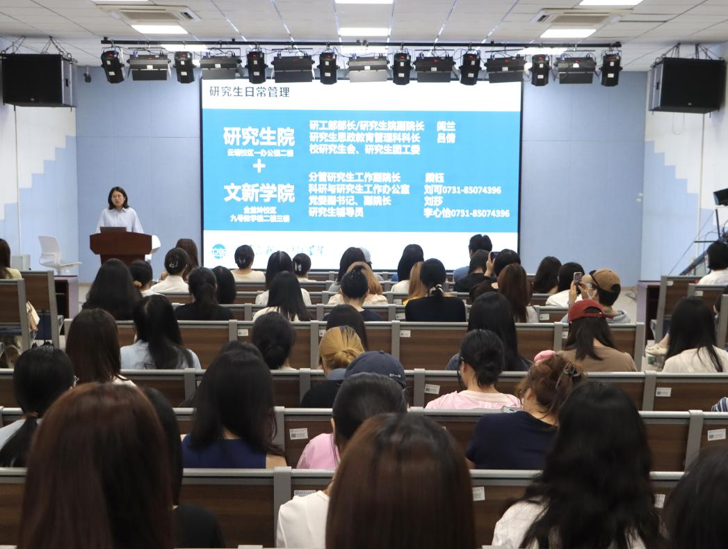 9月17日上午,2025级研究生新生入学教育之“心理健康与安全法纪”讲座在金盆岭校区九教113报告厅举行,文学与新闻传播学院研究生辅导员李心怡担任主讲人,文学与新闻传播学院2025级全体研究生参加。