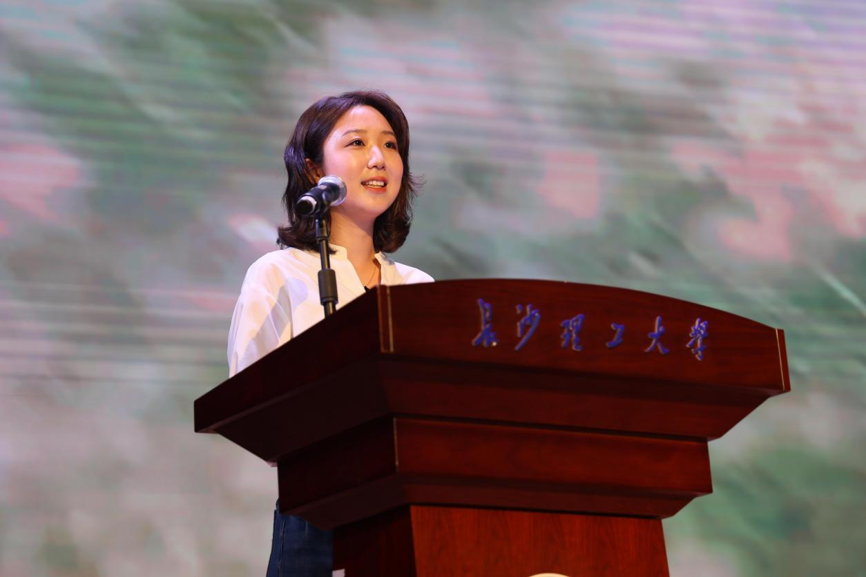 优秀毕业生代表新媒体2101班李祉陈登台分享。她首先回顾了本科期间所在班级的有效创新建设经验,而后提及深处各行各业、为社会做出贡献的优秀文新学子们,以实例展现了文新人的凝聚力与创造力,并以此勉励新生们找准方向、勤学笃行,绽放属于自己的光彩。