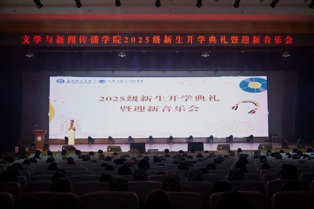 文学与新闻传播学院在金盆岭校区5教大礼堂举行2025级新生开学典礼。参加本次典礼的有院长刘建新、院党委副书记(主持工作)李娜、院党委副书记兼副院长刘莎、副院长戴钰、副院长候承相等全体院领导、系主任、系副主任、支部书记、各⾏政办公室主任、新进青年教师培养导师、全体辅导员、2025级本科班级班主任、下班党员下班团干、2025级新生家长以及全体2025级新生。典礼由新闻25级研究生新传张雨嫣、新媒体2501班王佳妮、新闻2502班粟嘉淇主持。
