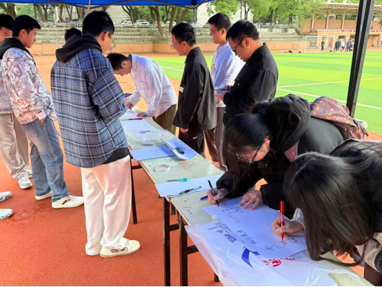 活动紧扣学院专业特色,设计了“物创标识”、“电控传输”、“圈住好礼”三大趣味环节,将专业元素与团队协作深度融合。在“物创标识——专业主题旗帜创作”环节,新生以班级为单位组队,围绕经典物理公式、电子元件符号等专业元素展开创作。白色旗帜上,薛定谔方程诠释量子奥秘,电路图勾勒学科特质,可爱卡通形象与严谨专业符号相映成趣,不仅展现了物电学子的创意才华,更让新生在创作中加深了对专业的初步认知。