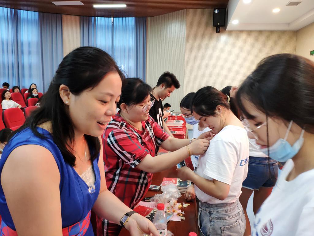 最后,各位领导及学生党支部书记为全体毕业生党员举行了重戴党徽及毕业纪念书籍(《梁家河》)赠送仪式。会议还对毕业生党员组织关系转接程序和注意事项进行了说明。