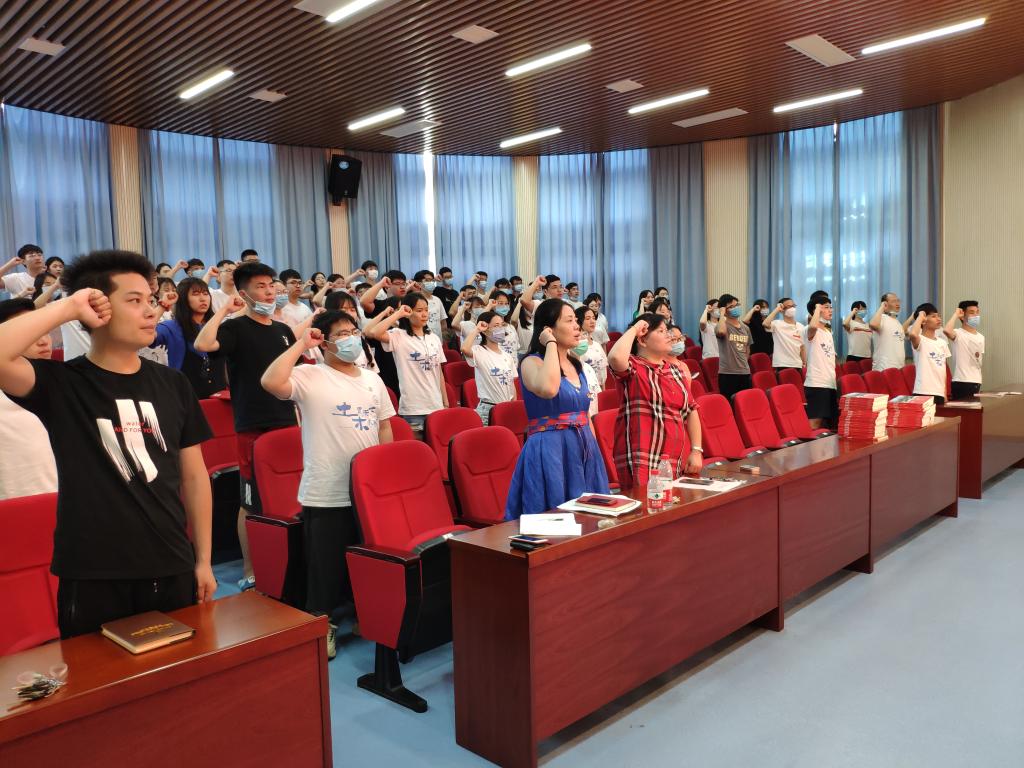 大会在雄壮的《国际歌》中拉开帷幕。全体毕业生党员在李小军的带领下,面向党旗,庄严宣誓,重温入党誓词。