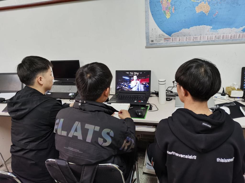 各学生支部根据支部实际情况,在实验室、寝室、工作室、教室等不同场合,以分散与集中相结合的形式进行收看,收看结束后还进行了讨论交流。