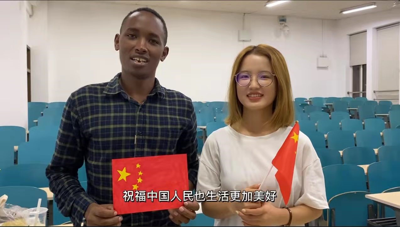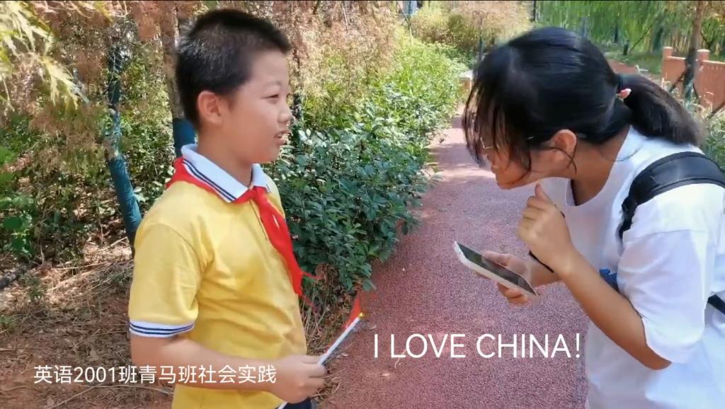 翻译专业大二的王雯辉手握小红旗激动道。她是外国语学院团委学生会组织部部长,当她收到来自各地的小青马们的活动视频和照片时,内心无比澎湃。她认为,这次青马班实践也使她增强了民族自豪感和文化自信,同时,大家通过与外国友人进行文化交流,也充分向外国友人展示了中国精神和中国力量。