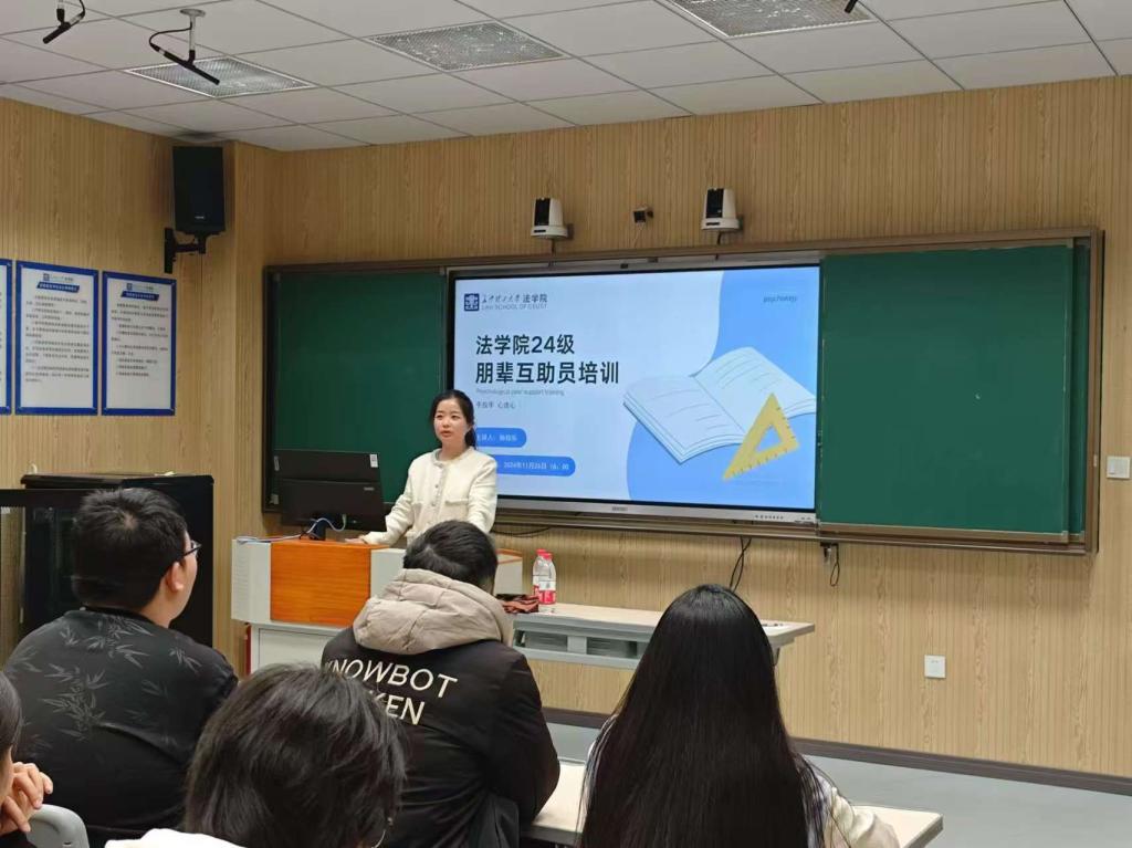 为加强学生心理朋辈互助员队伍建设,推动心理育人工作,法学院于11月26日在四教305教室开展新生朋辈互助员培训会。本次培训由法学院心理辅导员孙佳乐主讲,法学院全体新生朋辈互助员参会。
